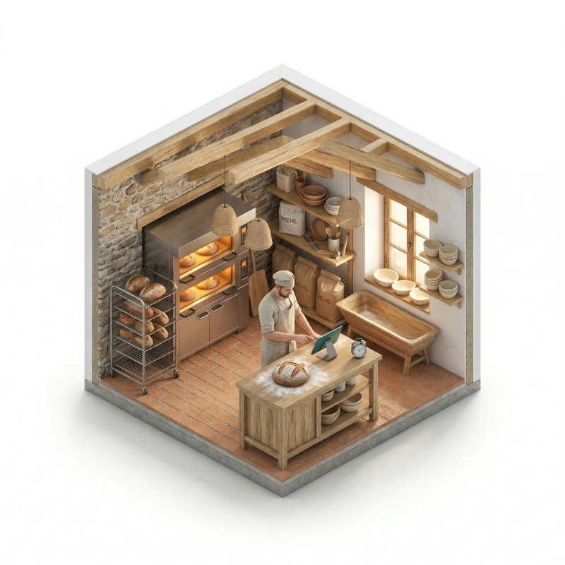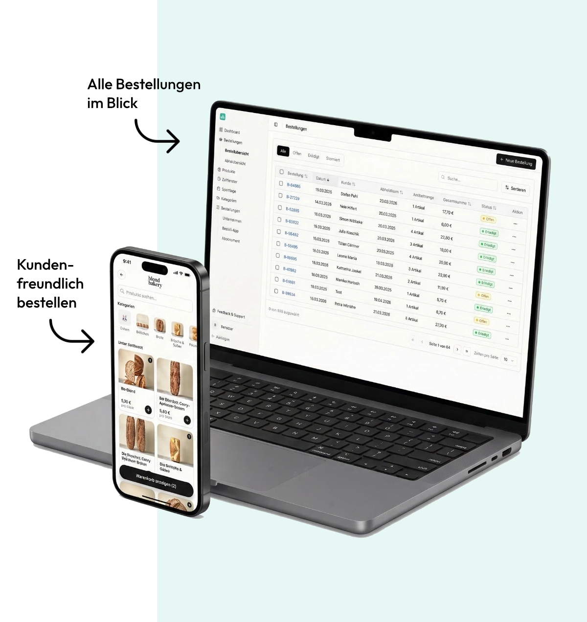 Sie wissen am Vorabend, was morgen bereit sein muss. Nicht ungefähr — genau. Welches Produkt, welche Menge, welche Abholzeit. Sie produzieren, was bestellt wurde. Nicht mehr, nicht weniger. Kein Raten, kein Überproduzieren, kein leerer Tresen um 10 Uhr.